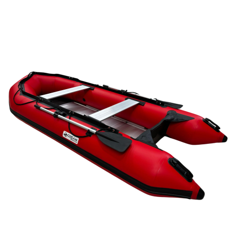 Embarcación neumática OZEAM 300 tiene 3 metros de eslora. El suelo de la embarcación es de aluminio de calidad, y tiene quilla hinchable. Este modelo viene equipado con remos, hinchador de pie, asiento, una bolsa de transporte y su kit de reparación.